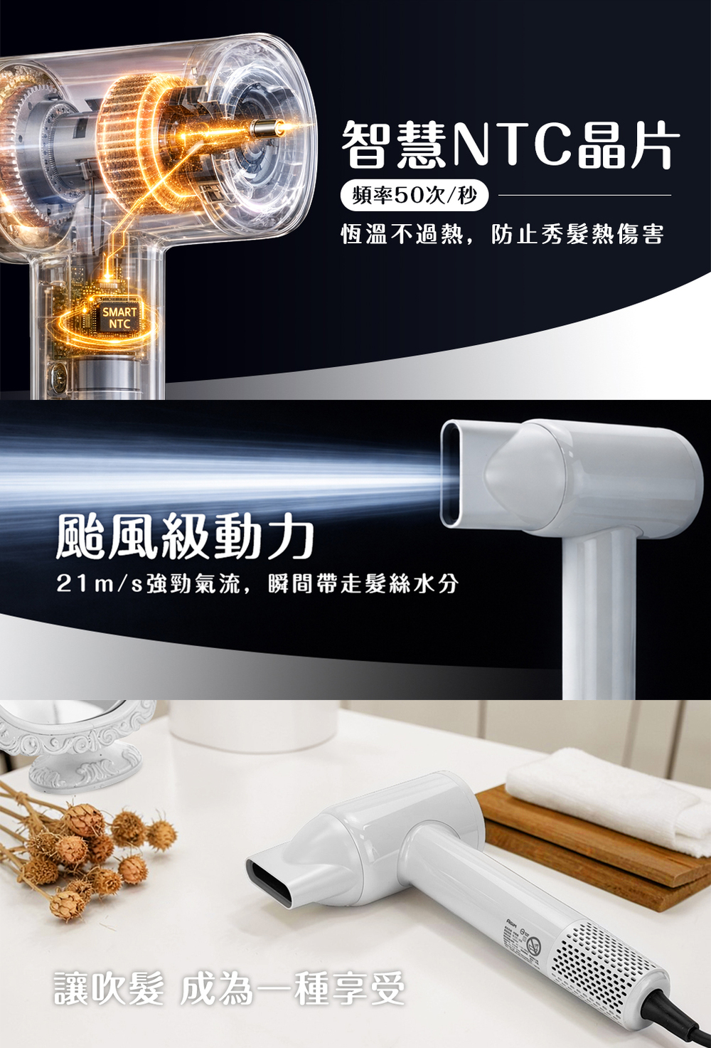 ● 高速無刷馬達動力-強勁氣流設計,快速乾髮更有效率