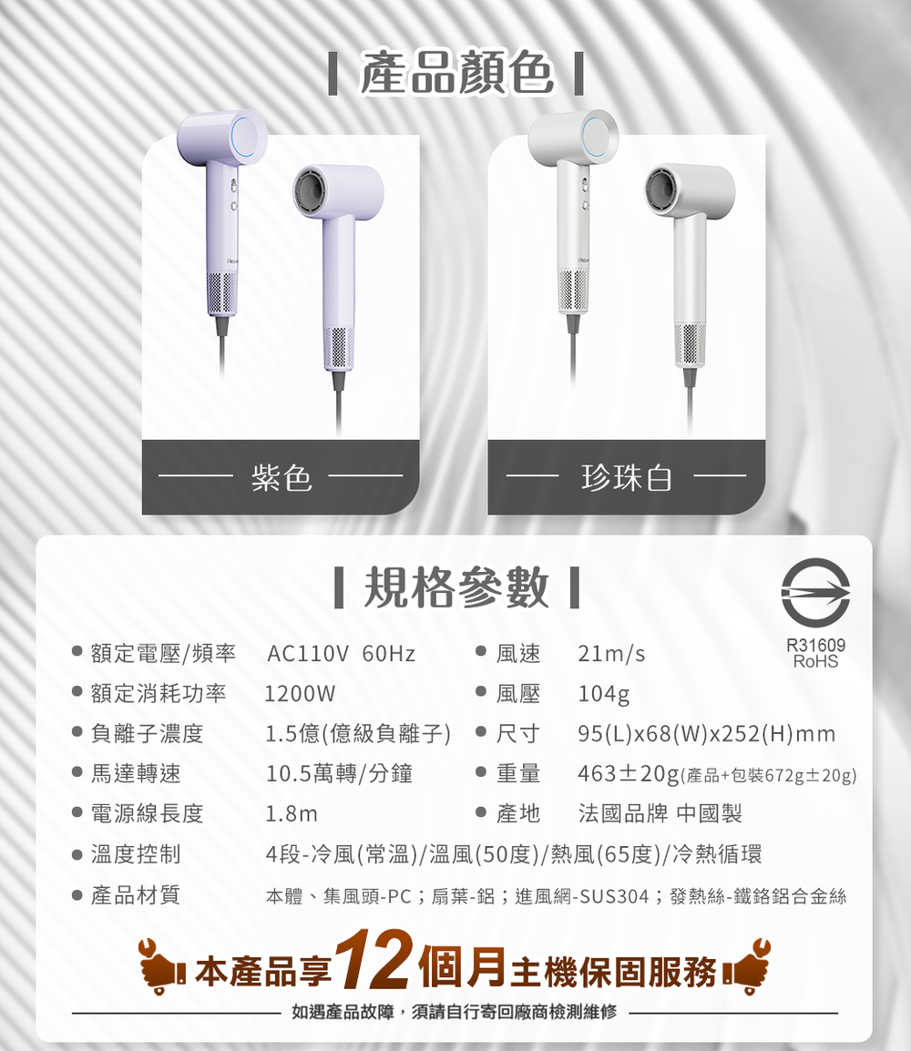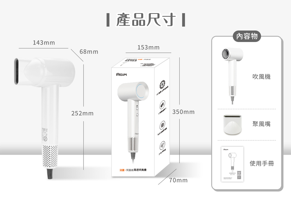 法國 阿基姆AGiM 極潤沙龍級高速吹風機 亮白 BLDC-208-PW