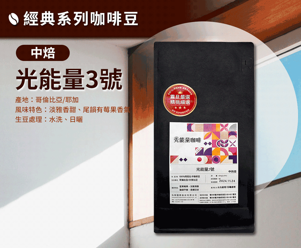 ●內容物:光能量3號(1磅/包)100%阿拉比卡咖啡豆