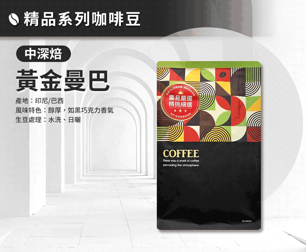 震旦嚴選 光能量咖啡豆 精品系列-黃金曼巴(半磅) 中深焙HX-TB-04
