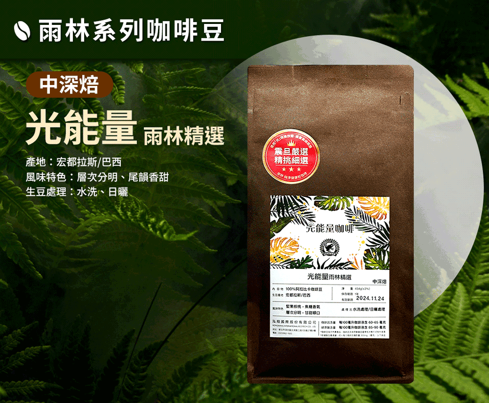 震旦嚴選 光能量咖啡豆 雨林系列-光能量 雨林精選(1磅) 中深焙HX-TB-08