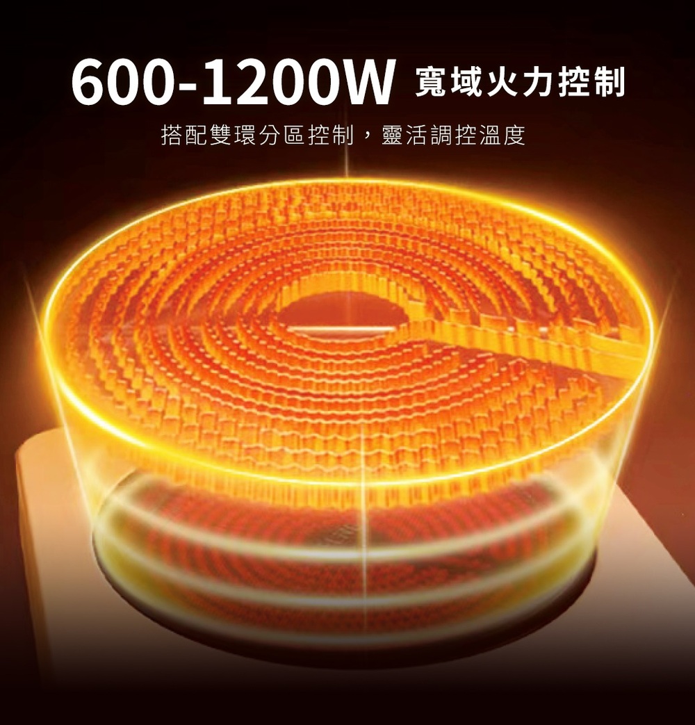 ●內外環獨立控溫,9檔火力調節,料理更隨心