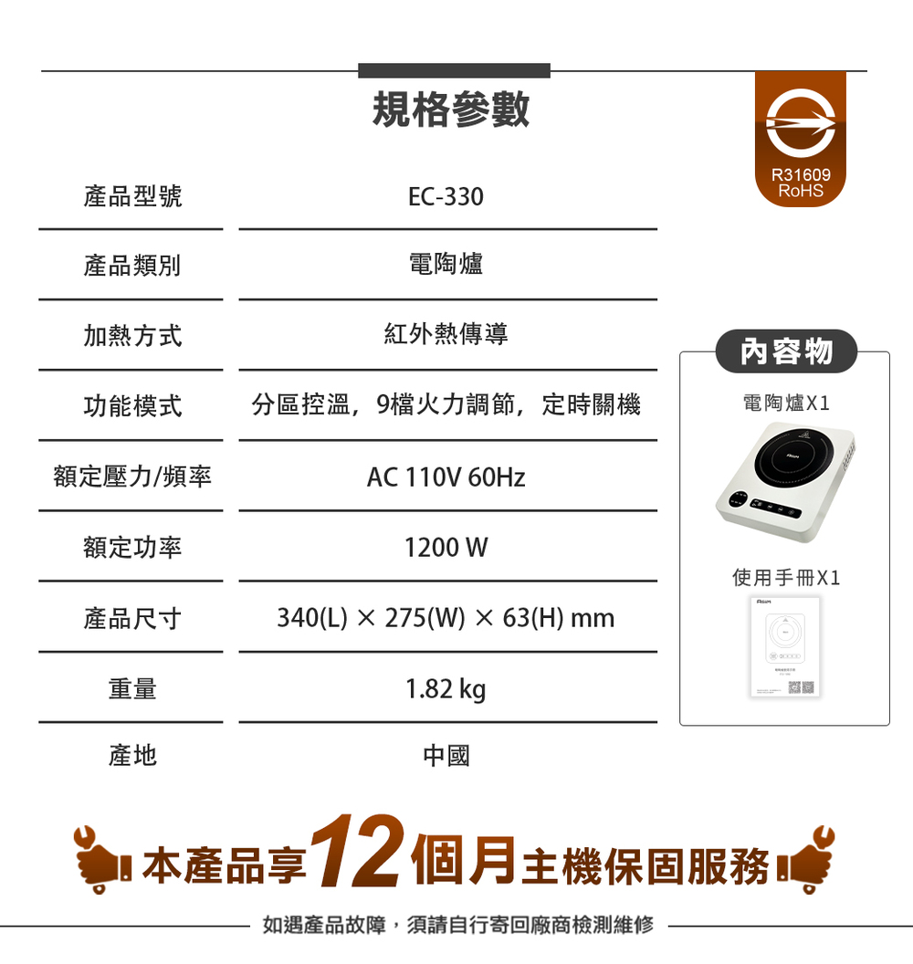 法國 阿基姆AGiM 萬能不挑鍋電陶爐(象牙白 ) EC-330-WH