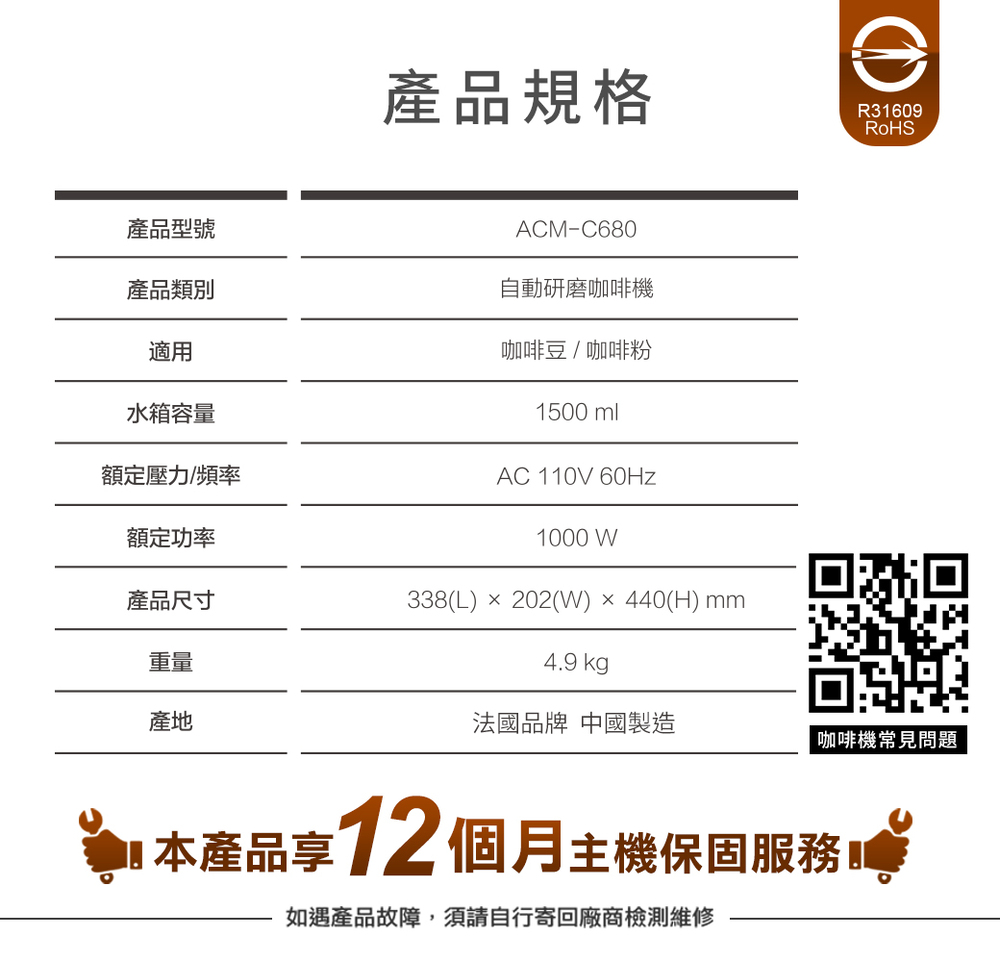 法國 阿基姆 AGiM 美式大咖冷熱雙萃全自動研磨咖啡機 ACM-C680